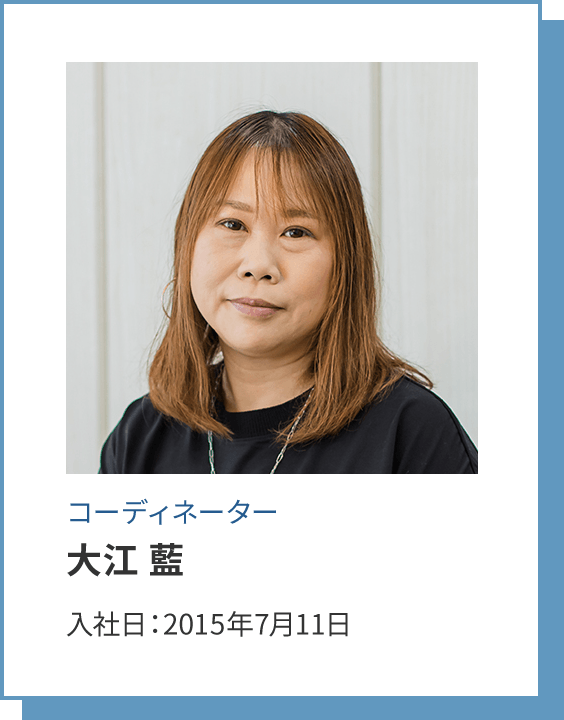 私は基本的に残業はなくて、定時で帰っています。社長や藍さん(大江)は打ち合わせに加え会社全体を見てくれているので忙しく残業をしている日もあります。この会社は「働き方も自分で決めていく!」という考え方があるので、私自身、子供の予定に合わせてスケジュールを調整しながら働けています。忙しい時もありますが、お2人に相談させてもらいながら進めていけるのでバランスはとりやすいかなと。