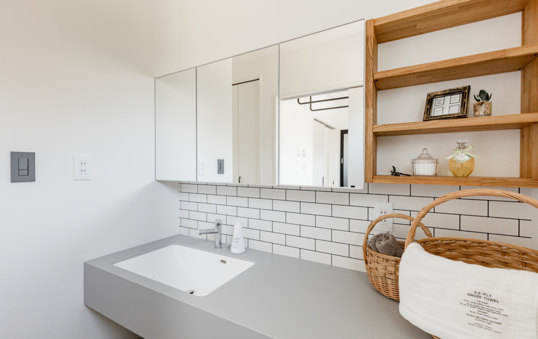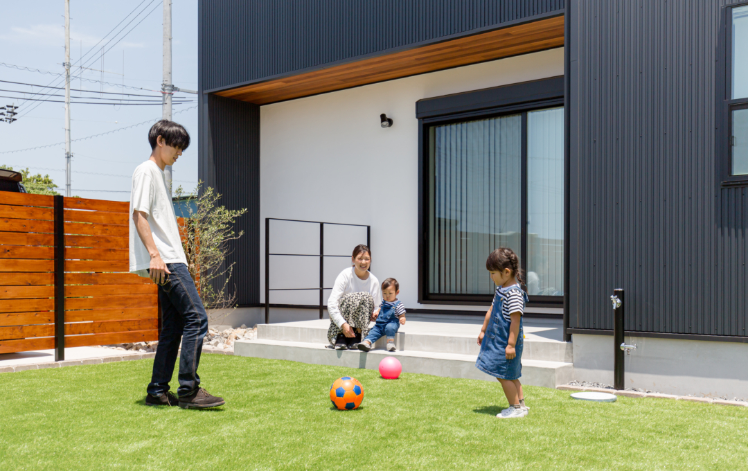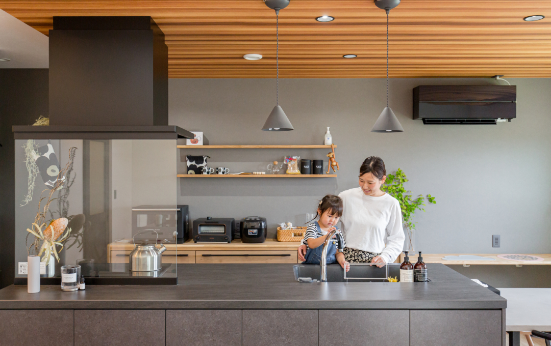 若いご夫婦がおうち創りを考え始めたのは奥様が二人目を妊娠されたタイミング。 賃貸では手狭になるので資料請求から何社か情報を収集。 性能もデザインもこだわりたかったので記す家に決めて下さいました。 今では全くストレスもなく快適に過ごして下さっています。 何より、朝早く起きるようになり、時間にも余裕が出来ました。 キッチンも広いので子供がお料理のお手伝いをしたいと言うようになったり、ご主人様も家事に協力的に。 共働きの為、時間に追われていたけれど、お家を建ててからは家事も時短でストレスがなくなった。 お互いのこだわりたい部分をいい具合に取り入れれたのでお気に入りの場所が沢山ある。 ご主人様は洗面台やキッチン・奥様は好きな色を沢山使ったクロスや真鍮のライト、玄関のコンクリートに施工したかった真鍮レター等。 友人にも家族にも自慢できるおうちができました!! 広いお庭で遊んだり夏にはBBQしたり・・・ 下の子供が大きくなったらサッカーもしたいな。 妄想が止まりません。