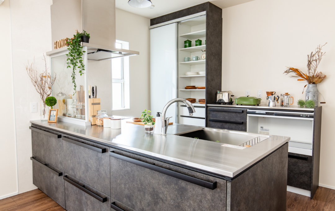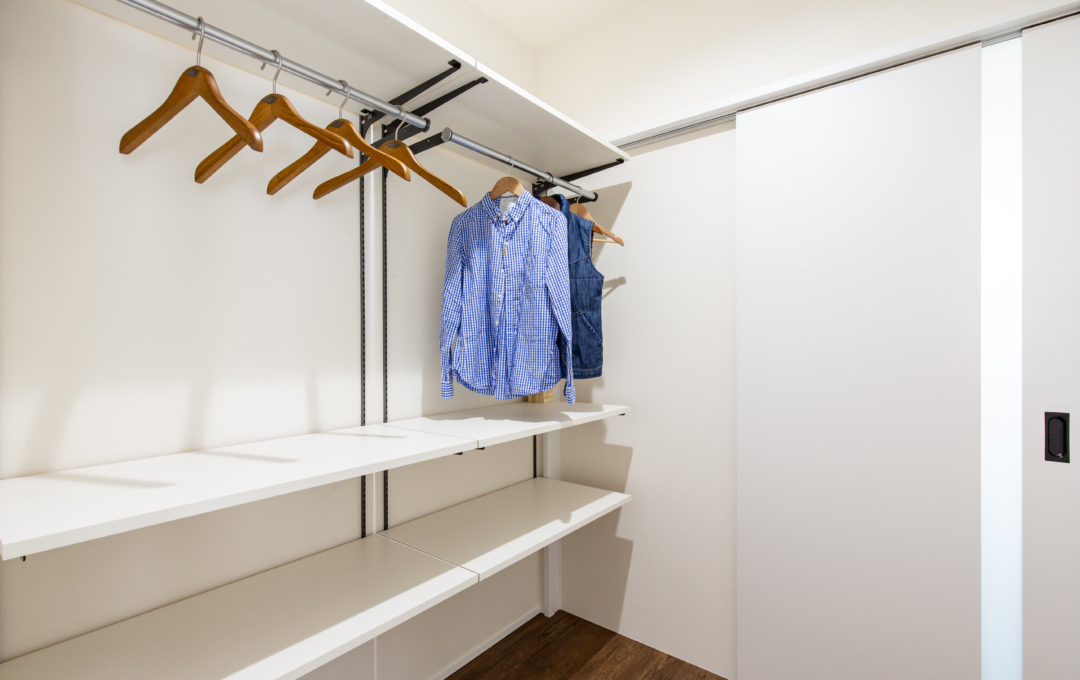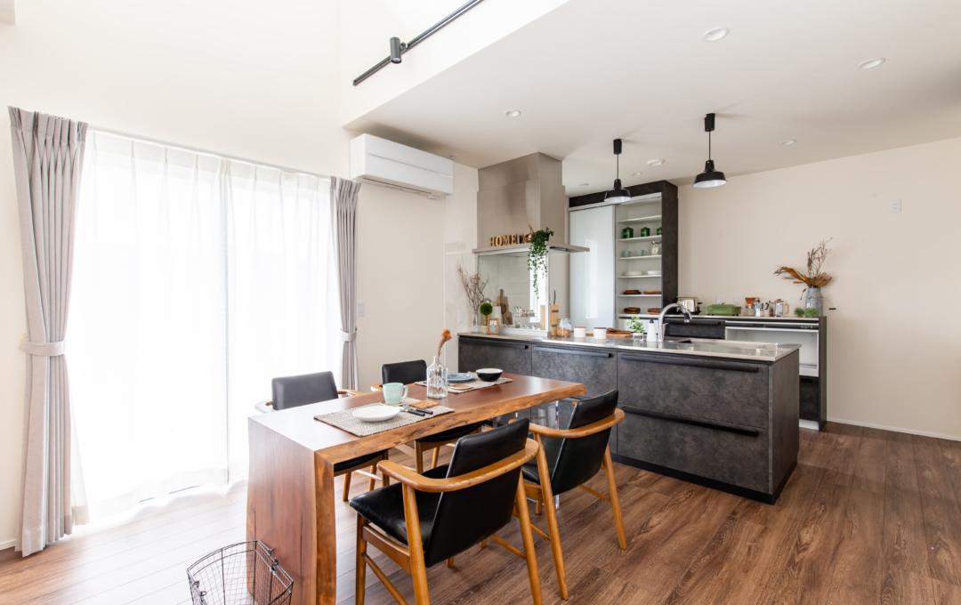 外観も内部もとにかくカッコよく、明るく、家族が広々と子供たちが伸び伸びと自分の事は自分でできるように工夫されたおうち。 友人や家族が来てもみんなにカッコいいと思ってくれるお家が良くて・・ コーディネートしました。 子供が帰って来たらすぐに色んなものを収納できるクローゼットを玄関から 続きにして、動線を良くしました。 ウォークインクローゼットが夢だった奥様。 寝室を少し広い目に取り、扉を分けて階段からすぐの所にたっぷり収納できるクローゼットを作りました。 リビングには冬の夕方4時頃まで明るい日差しが入ってきます。 吹き抜けも明るさ抜群。家族みんなが仲良しでみんなが集うおうちに仕上がりました。