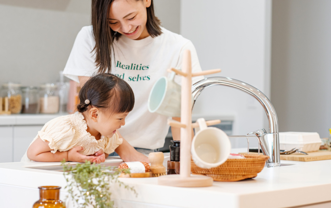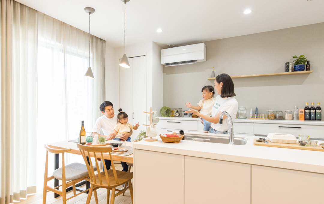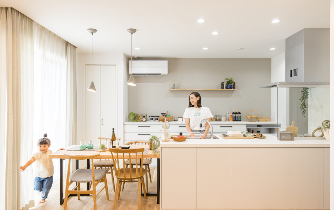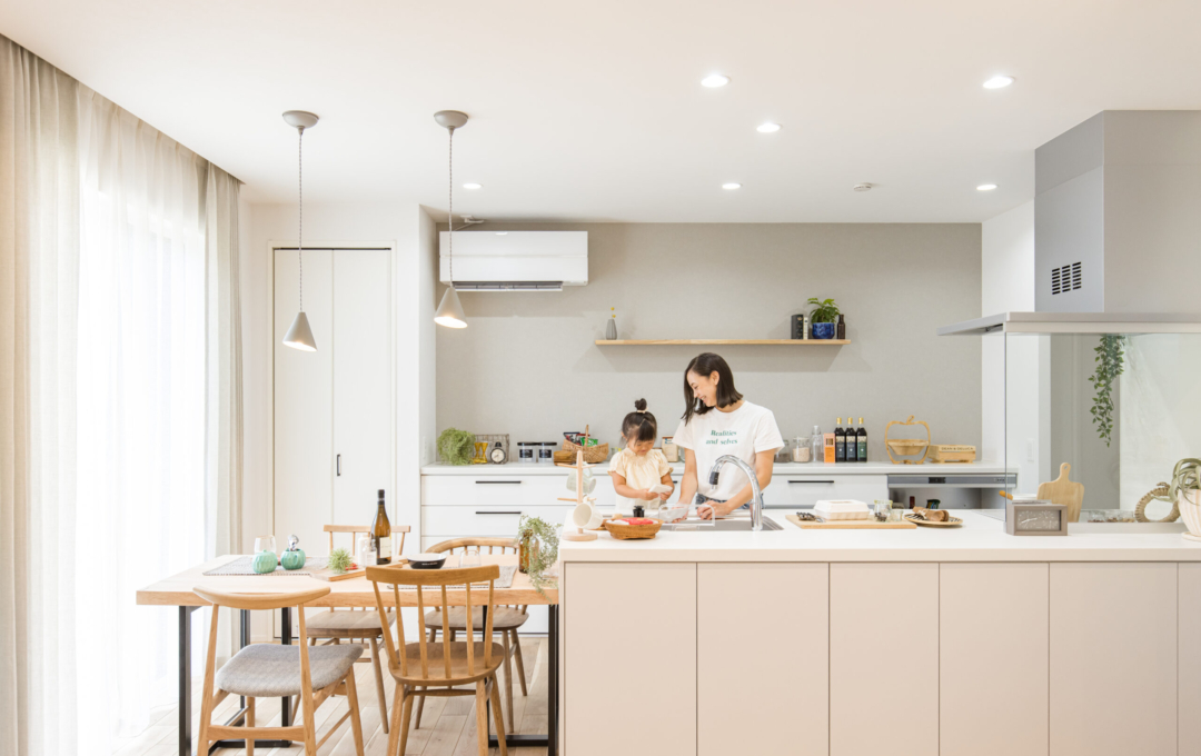 おうち創りのはじまりは串本の完成見学会。 ご主人様は記す家の業者さんですが、奥様は初めて見る記す家でした。 入った瞬間に「あ。これが家やな・・」と直感したそうです。 いろんな会社の見学会にも行ったそうですが、それからは記す家一筋にご夫婦共に決めて下さいました。 キッチンのミーレ食洗器が絶対!! と、最後まで調整しながらキッチンはワンランク上のリシェルに。カップボードは標準のアレスタで組み合わせ。 色の相談やサイズなど細かく打合せすること数回・・ そのたびに迷子になりながらもコーディネーターと一緒にあーでもないこーでもないとたわいもない話もしながら決定。 おうちができてから「ここ、こんな風にしたらよかった・・・」とかが全くないです!!! と言って下さったのがとても嬉しかったです。 子供たちも広いリビングで思いっきり遊んでご機嫌の様子。 洋室のドアはハイドアなので来客時は閉め、普段は開けていればとっても広い空間のできあがり。 カーテンも天井に埋込細工をしているのでとても広く見えます。 床は無垢の北海道ナラ材を使い、質感も見た目もGOOD。 とにかく大人カワイイ色使いをご覧ください。 グレーと白を基調とした大人カワイイおうちの完成です。
