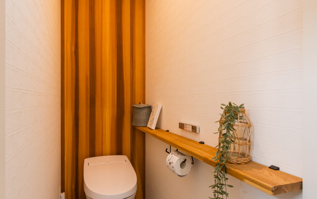 リビングのアーチ壁と玄関のニッチもアーチにして可愛さを。 二階の空間はシックに各部屋壁紙を変えて子供たちそれぞれの空間があります。 トイレはまるでカフェのようなイメージに。決める時に施工事例を見てこれだ!と選んだもの。